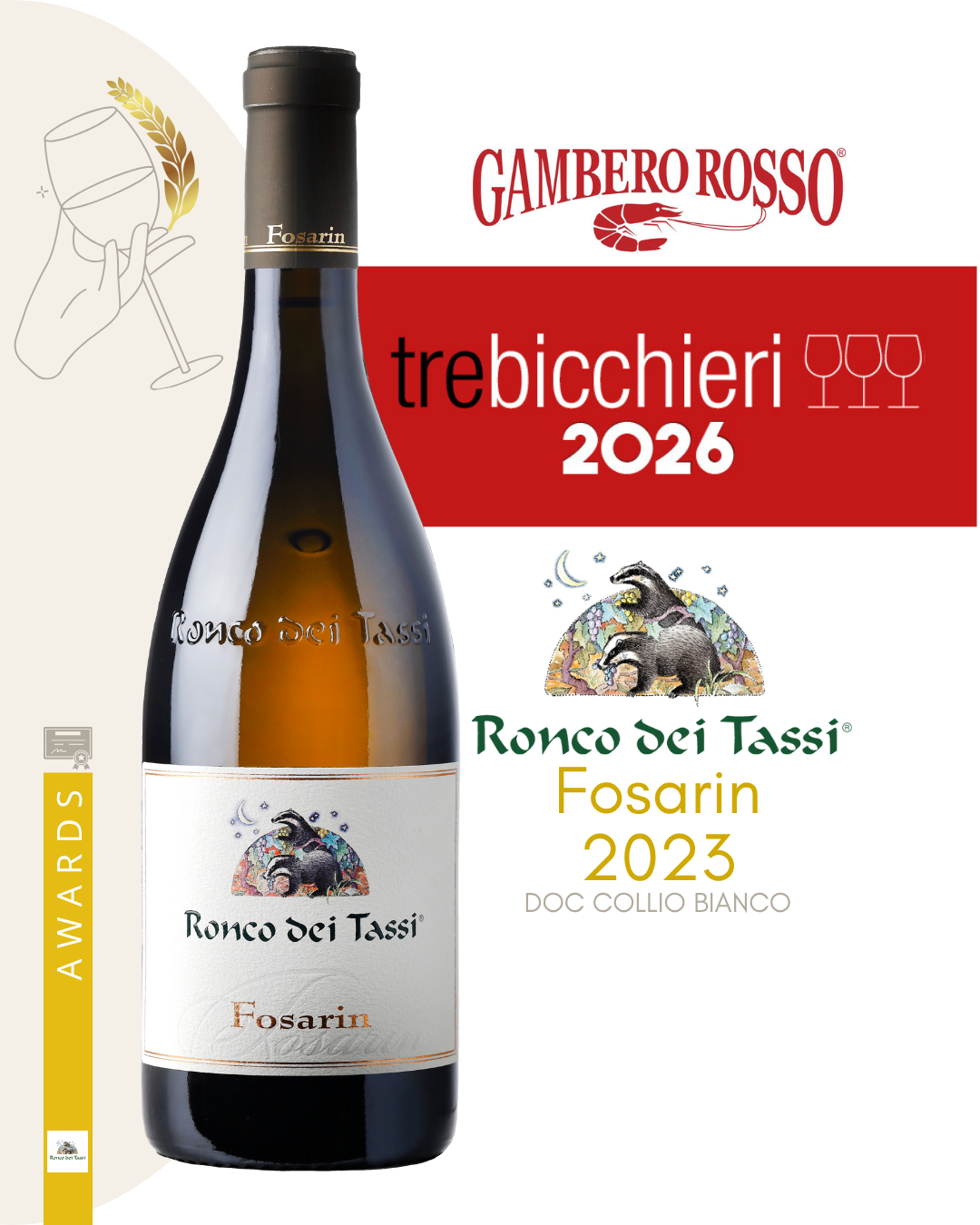 Il nostro Fosarin 2023 è stato premiato con i prestigiosi Tre Bicchieri del Gambero Rosso nella guida Vini d’Italia 2026!